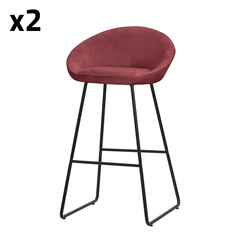 Set di 2 sgabelli da bar ergonomiche rosso schienale curvo imbottite