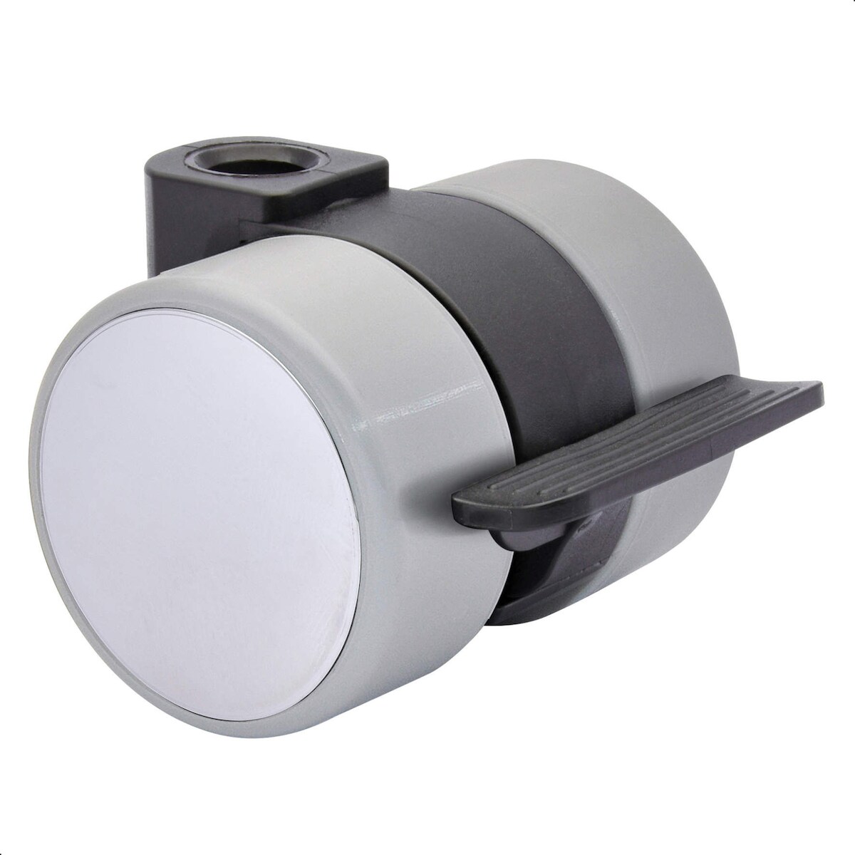 WAGNER Design Möbelrolle/Soft-Lenkrolle - Ø 38 mm, Bremse, schwarz/grau, Kappe chrome, Tragkraft 50 kg - 01010601