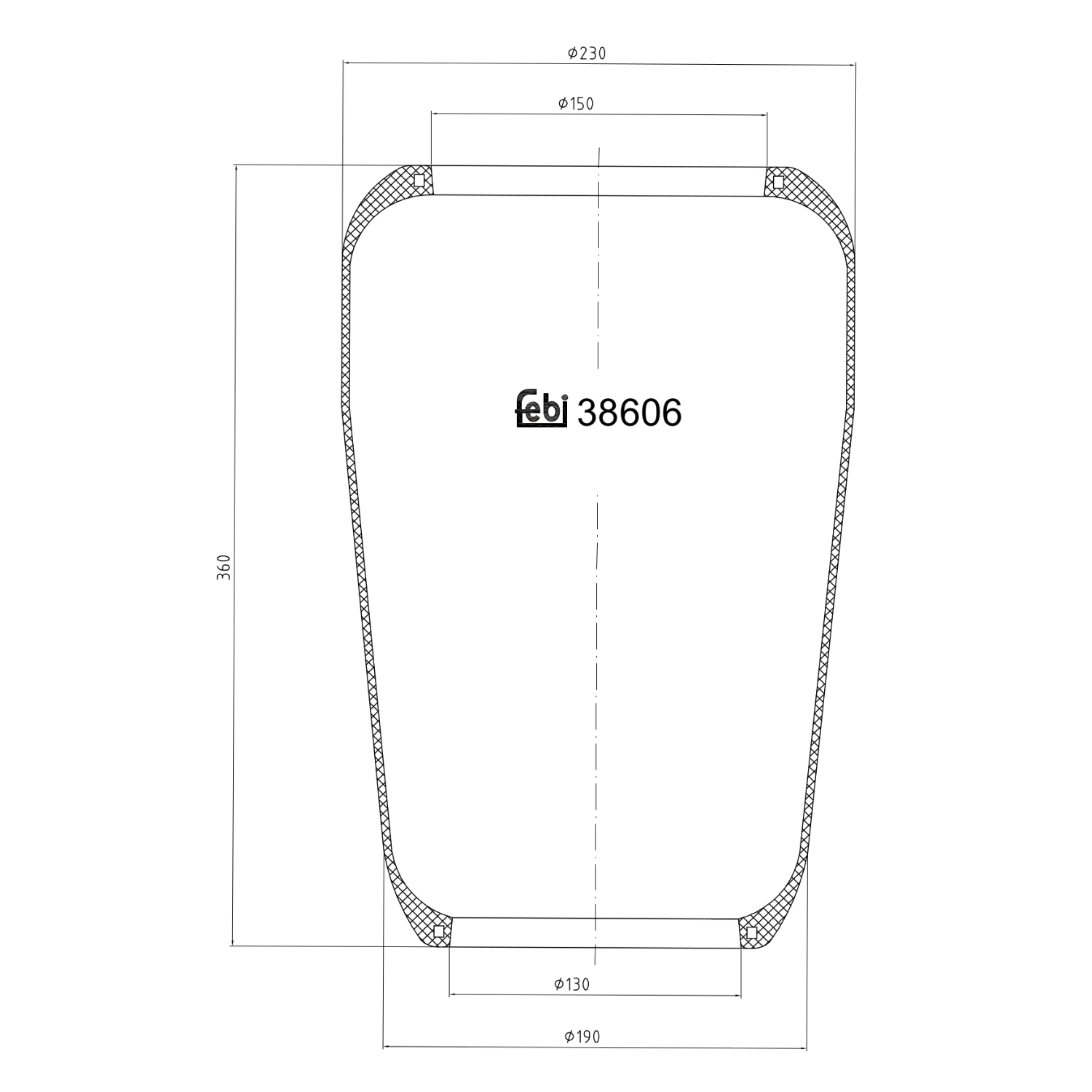 FEBI BILSTEIN Federbalg, Luftfederung 38606 Universal vorne rechts links ohne Kolben 192mm für RENAULT TRUCKS IRISBUS IVECO VOLVO 5001843640 20554764