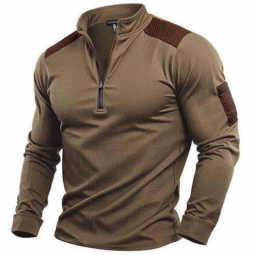 Per uomo Maglietta Maglietta a Maglia Waffle Maglietta con Zip a Quarti Manica Lunga Collo alla coreana Zip a un quarto Primavera Autunno Primavera Autunno Tinta unica Maglieria Vintage Quotidiano