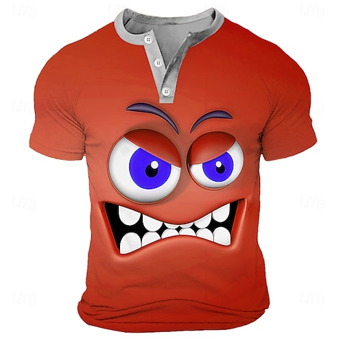 Per uomo Cartoni animati Volto umano Maglietta Maglia Henley Manica Corta Designer Retrò Vintage Casual Casuale Quotidiano Streetwear Estate Primavera Nero Blu Verde Rosso Henley Maglietta Henley