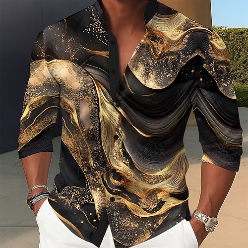 Per uomo Motivo Geometrico Marmo Arte liquida astratta Camicia Camicia con colletto alla coreana Manica Lunga Moda Casual Abbigliamento Quotidiano Ferie Primavera Autunno Collo alla coreana Colletto