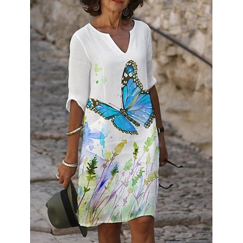 Per donna Abito Midi Vestito Casual Abito Stampato Moda Moderno Quotidiano Spiaggia Weekend Vestibilità regolare Floreale Farfalla Manica 3/4 Girocollo Blu Giallo Viola Arancione Estate Primavera