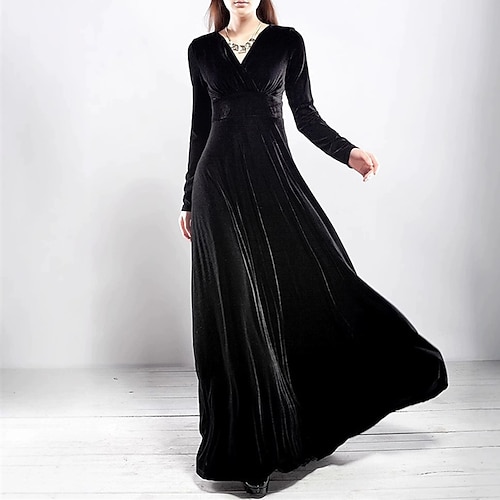 Per donna Abito Midi Abito in Velluto Vestito da Festa Vestito a ruota Abito verde smeraldo Elegante Moda Romantico Vacanza Abito Invernale Ospite di nozze Taglia piccola Floreale Manica Lunga Scollo