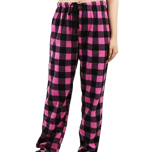 Per donna Pigiami Casual Lunghezza intera Vita media Griglia / Plaid Elastico in vita Calore Termico Confortevole Micro-elastico Casa Rosa Rosso Blu Grigio Autunno Inverno Vestibilità regolare