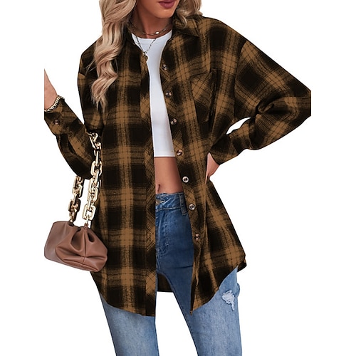 Per donna Giacca Camicia Confortevole Traspirante Tasca Bottoni Stampato Casual Plaid Vacanza Streetwear Casuale Abbigliamento quotidiano Monopetto Regolare Collo ripiegato Vestibilità regolare