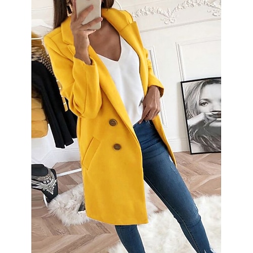 Per donna Cappotto Invernale Confortevole Traspirante Tasca Bottoni Casual Semplice Vacanza Streetwear Casuale Abbigliamento quotidiano Monopetto Lungo Collo ripiegato Vestibilità regolare Manica