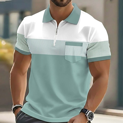 Per uomo A righe Polo Manica Corta Magliette polo Bavero Casual All'aperto Ferie Abbigliamento quotidiano Tasca Stampa 3D Estate Blu Viola Verde
