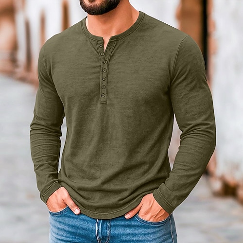Per uomo Maglia Henley Camicie retrò Camicia vintage Maglietta Camicia a Maniche Lunghe Manica Lunga Semplice Tinta unita Vintage Moda Essenziale Puro Henley Vacanza Streetwear Casuale Estate Tutte