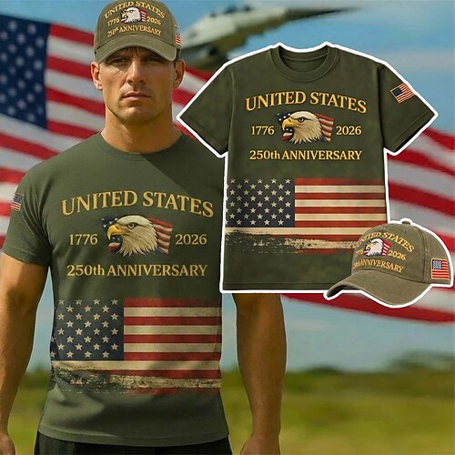 Set di t-shirt e cappellino da baseball per il 250° anniversario degli Stati Uniti - maglietta con grafica e bandiera degli Stati Uniti e aquila 1776-2026, patriottica per uomini e adulti per il giorno dell'indipendenza