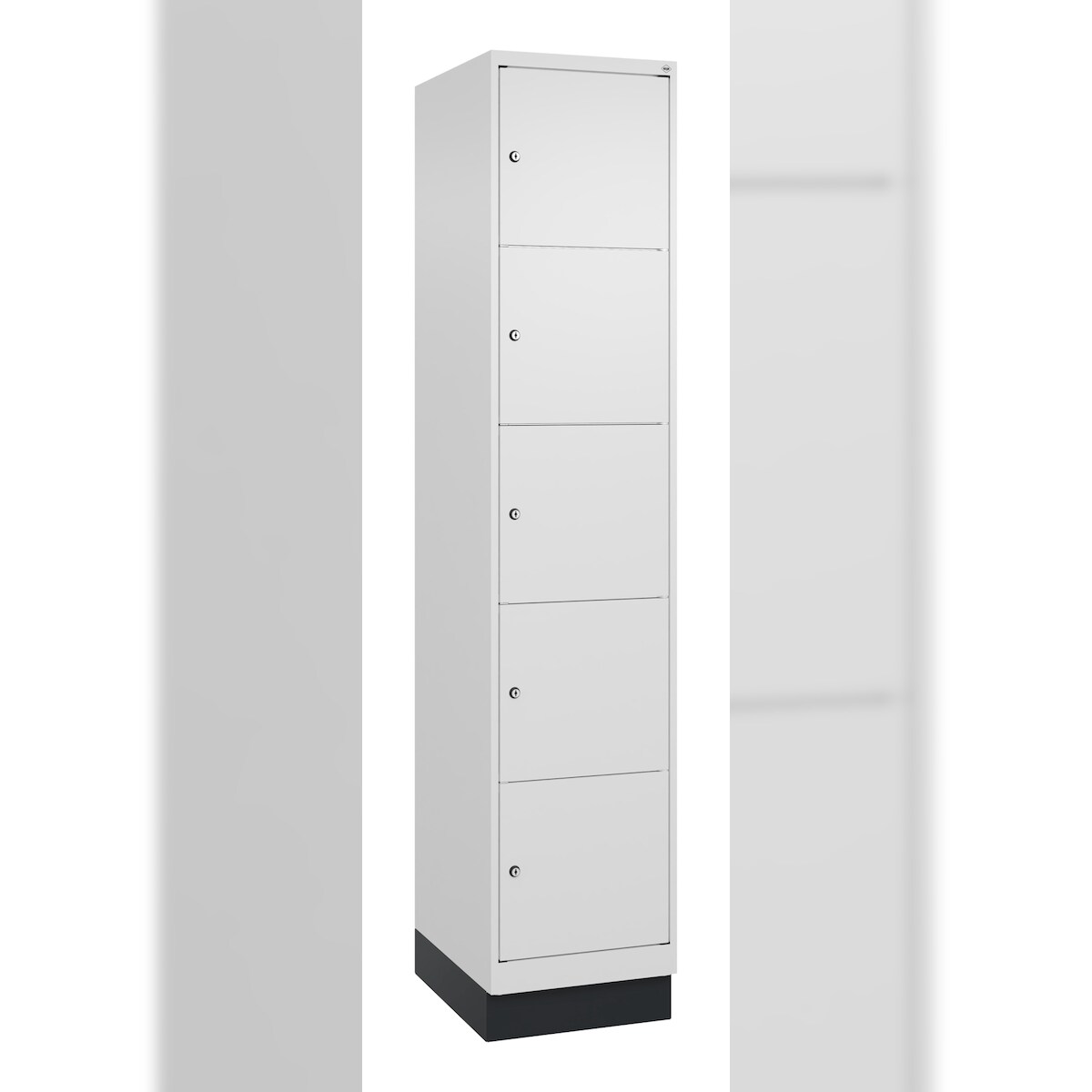 C+P Schließfachschränke Classic PLUS, Sockel, 5 Abteile, HxBxT 195x40x50cm, Zylinderschloss, Verkehrsweiß von PROREGAL