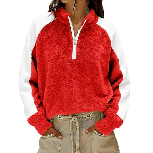 Per donna Felpa Pullover Felpe con cappuccio Blocco di colori Semplice Elegante Caldo Attivo Manica Lunga Mezza zip Top Regolari Lavoro Streetwear Abbigliamento Quotidiano Cerniera Verde primavera