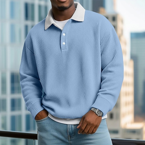 Per uomo Blocco di colori Geometrico Polo Manica Lunga Magliette polo Bavero Casual All'aperto Streetwear Athleisure Abbigliamento quotidiano Stampa 3D Bottoni Primavera Autunno Inverno Blu Azzurro