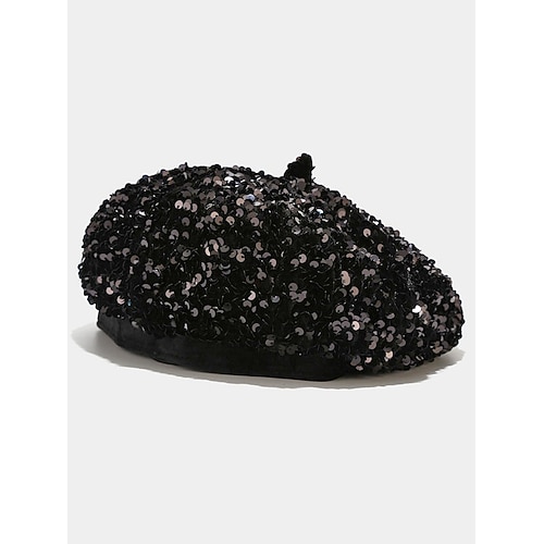 berretto da donna con paillettes, materiale in poliestere, vari colori, elegante e lucido, perfetto per feste e occasioni speciali