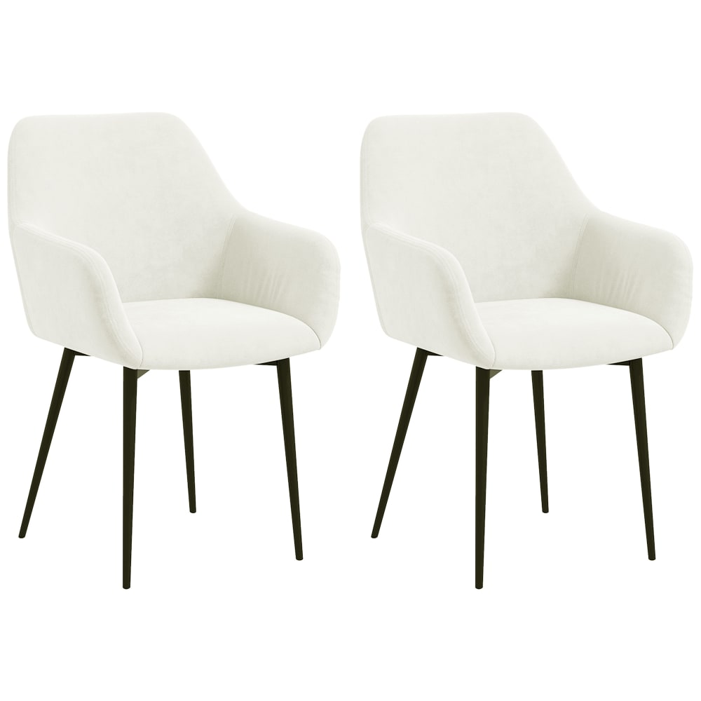 Set 2 sedie da pranzo stile nordico vellutato con braccioli crema