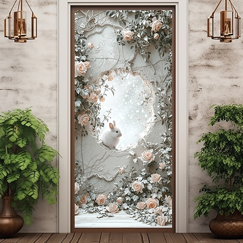 Coperture per porte con conigli decorazione murale arazzo per porte decorazione per tende sfondo bandiera per porte removibile per porte anteriori decorazione per casa stanza forniture per fattoria