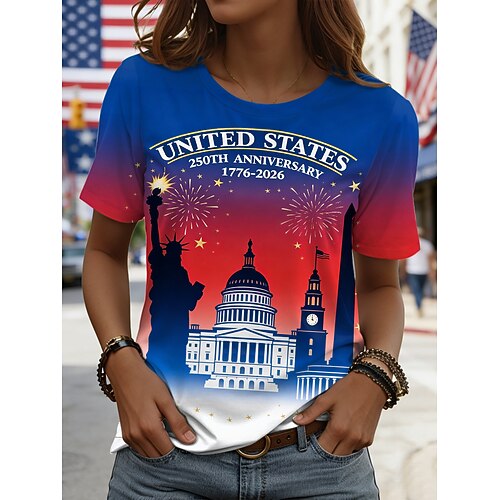 Maglietta patriottica per il Giorno dell'Indipendenza Donna Maglietta Grafica Bandiera Vintage Elegante Casual Manica Corta Girocollo Regolare Top Quotidiani Stampa Blu Bianco Rosso Estate Primavera