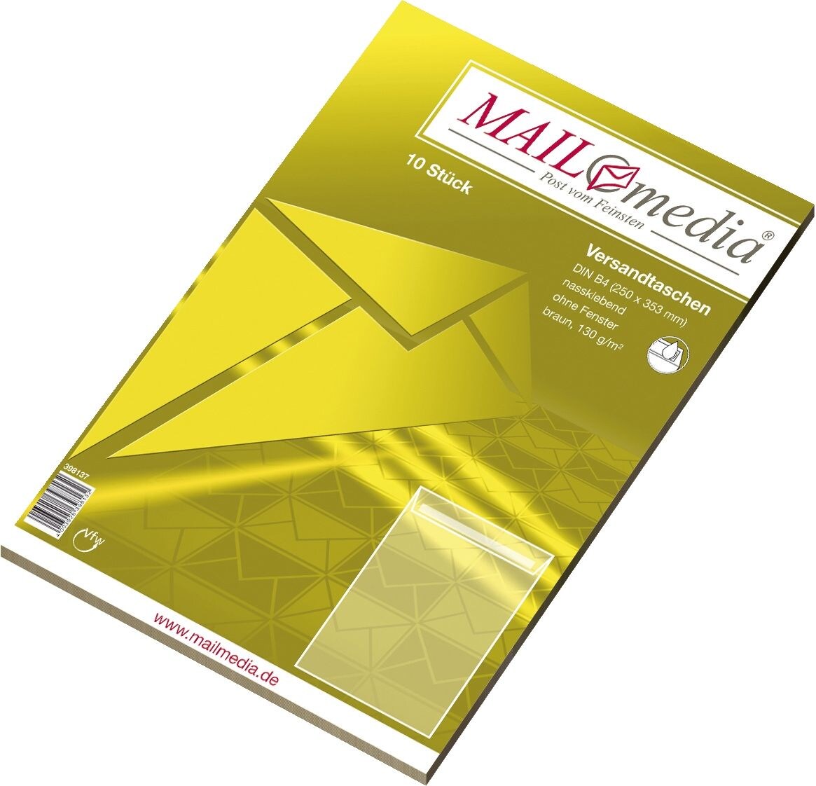mayer-network 398137 Versandtasche B4, nassklebend, ohne Fenster, braun, 130 g/qm, 10 Stück