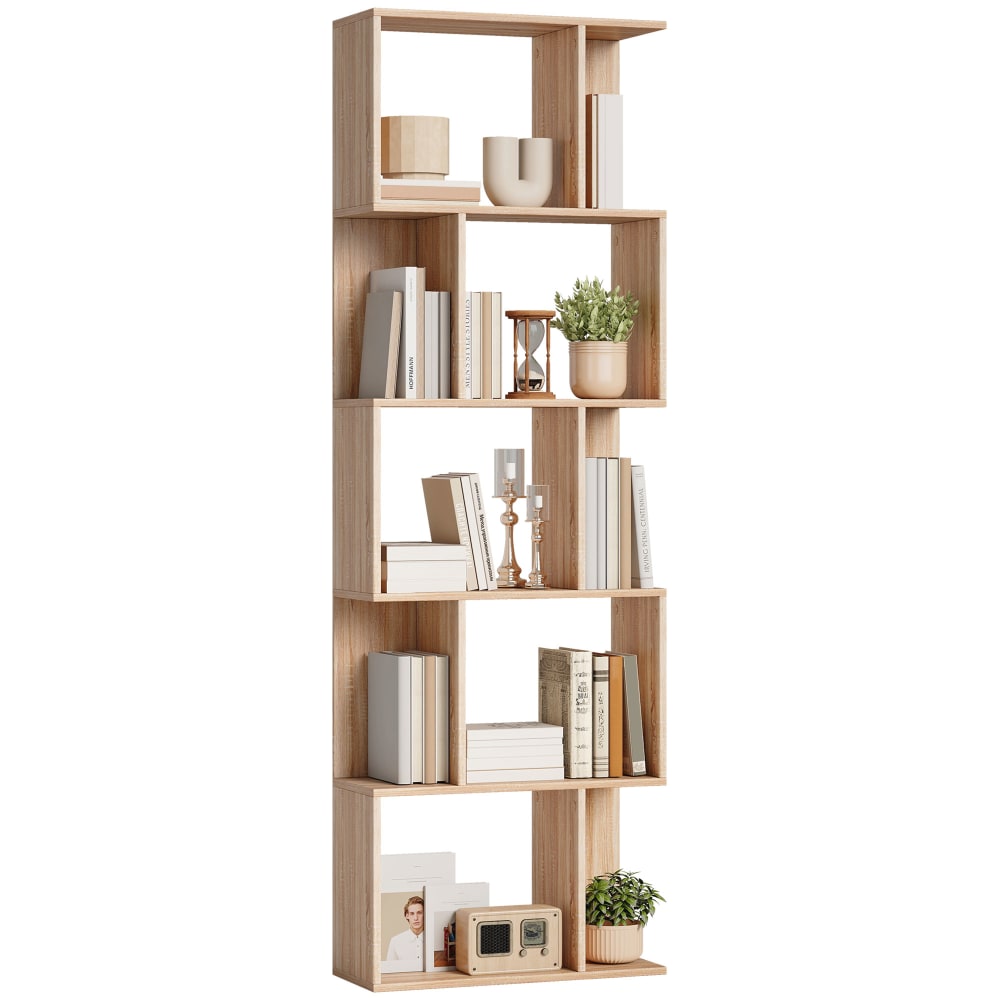 Homcom Bibliothèque 5 niveaux en forme de S en bois effet bois naturel Beige 60x185x24cm