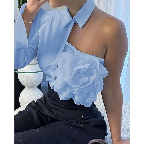 Per donna Camicia Blusa Semplice Elegante Moderno Manica Lunga Scollo a V Top Regolari Quotidiano Ferie Uscire Volant Nero Blu marino Verde Albicocca Rosa Primavera Autunno