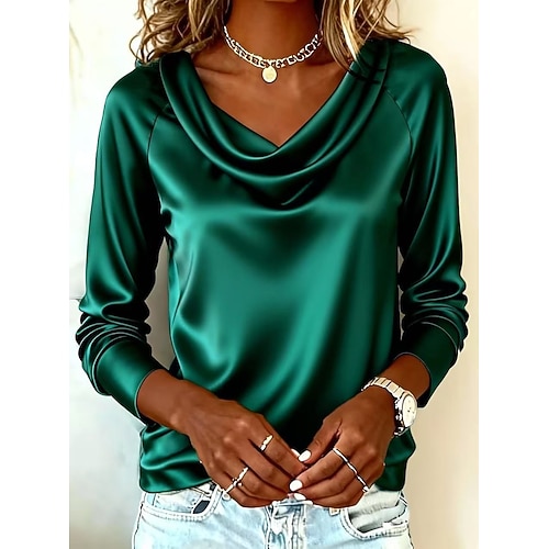 Per donna Camicia Tinta unica Elegante Vintage Essenziale Manica Lunga Scollo a Cascata Top Regolari Quotidiano Nero Rosa Rosso Verde Beige Primavera Autunno Inverno Primavera, Autunno, Inverno