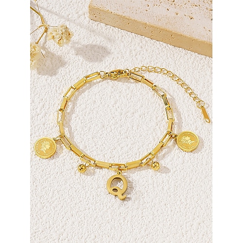Bracciale da donna placcato in oro con lettere dell'alfabeto, ciondoli a forma di moneta e pallina, catena regolabile, elegante regalo di Natale per lei, accessorio di gioielleria personalizzato