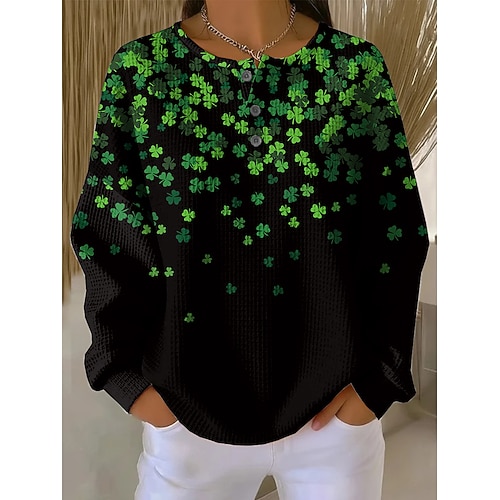 T-shirt da donna di St. Patrick per il giorno di San Patrizio trifoglio elegante classico casual maniche lunghe scollo rotondo top regolari stampa quotidiana neri bianchi primavera autunno