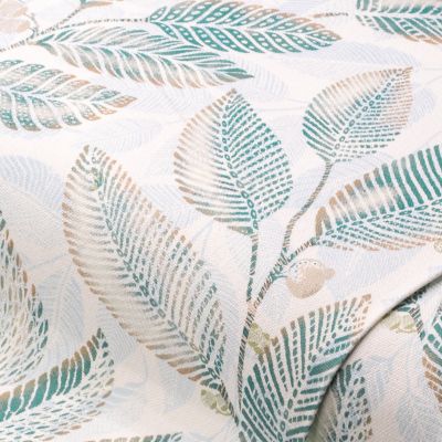 Tissu canvas de coton "feuilles", écru naturel/coloré, série Doreen