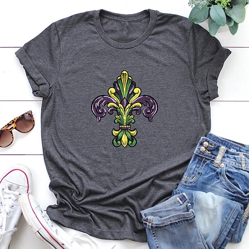 Per donna maglietta Cotone Stampa Carnevale Giornaliero Fine settimana Di tendenza Manica corta Rotonda Vino Primavera estate