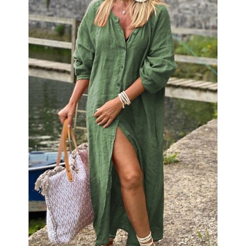 Per donna Abito maxi Vestito Estivo Casual Boho Quotidiano Ferie Semplice Manica Lunga Girocollo Nero Blu marino Arancione Verde Estate