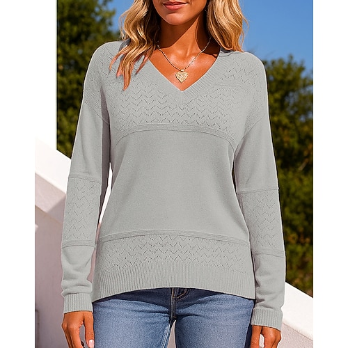 Per donna Maglia in maglia Pullover Maglione Incavato Manica Lunga Top Athleisure Autunno Scollo a V Blocco di colori Di tendenza All'aperto Viaggio Sportivo abbigliamento sportivo Abbigliamento