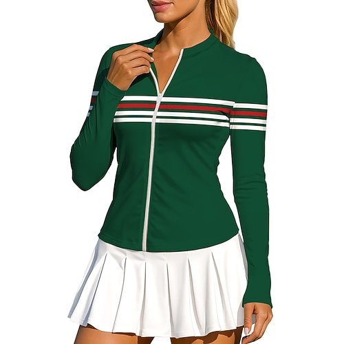 Per donna Geometrico A righe Top Maglietta sportiva Maglia da tennis Maglietta da tennis Manica Lunga Cerniera Floreale UPF50 Resistente ai Raggi UV Alta elasticità Traspirante Pallavolo Tennis Golf
