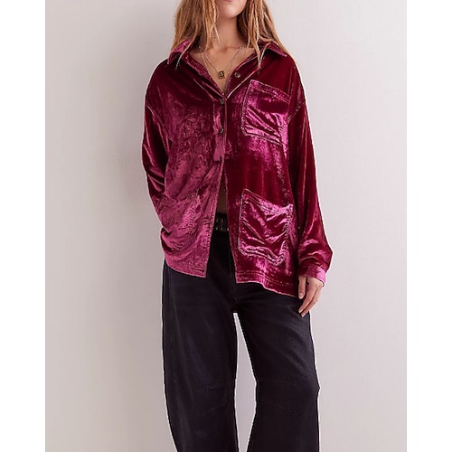 Per donna Camicia Velluto Elegant Elegante Semplice Vintage Elegante Manica Lunga Colletto a Camicia Top Regolari Ferie Uscire Bottoni Argento Blu marino Rosa Primavera Autunno