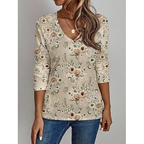 Per donna Camicia Floreale Elegante Essenziale Casual Manica Lunga Colletto a Camicia Top Regolari Quotidiano Bottoni Stampato Rosa Viola Primavera Autunno