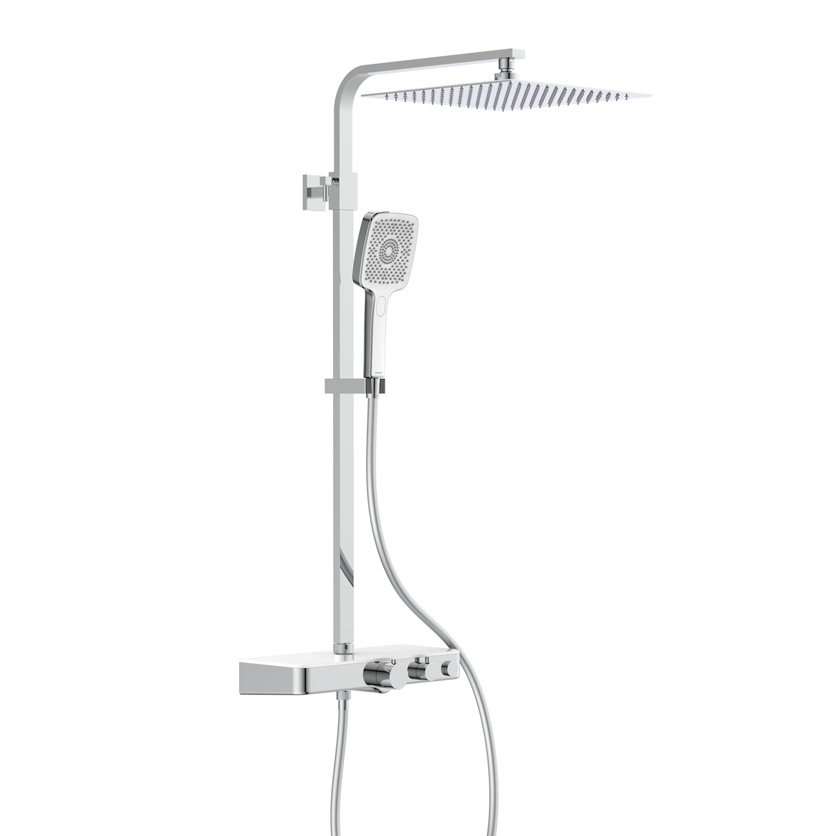 Schütte Duschsystem OCEAN, Edelstahl Regendusche mit Thermostat und Ablage, Handbrause mit 3 Funktionen, Duschbrause Chrom/Weiß