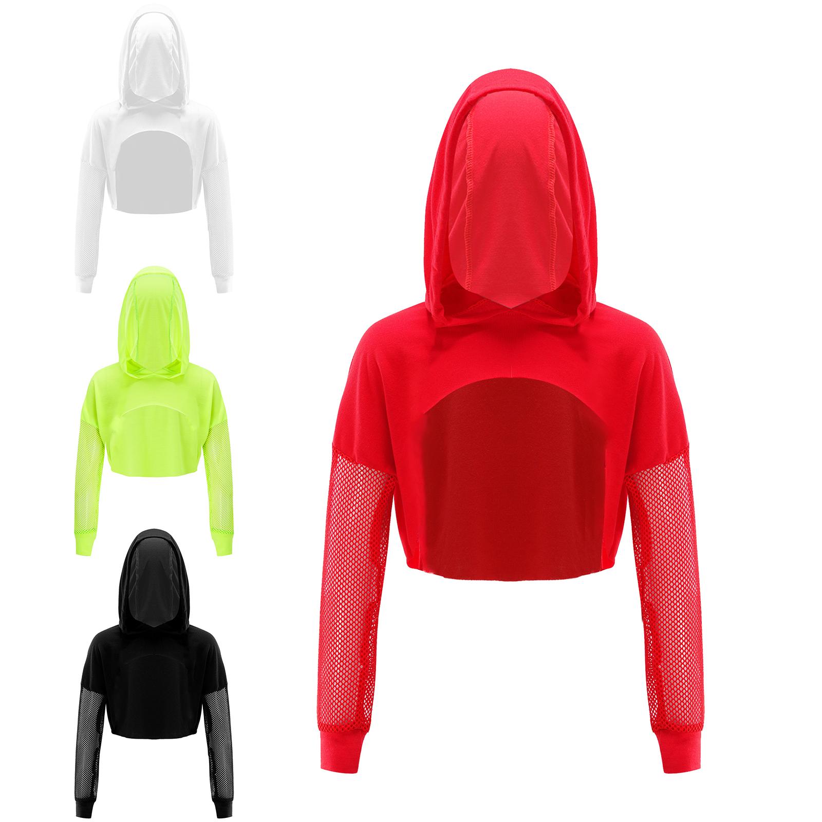 Kinderen Meisjes Lange Mouwen Visnet Cropped Hoodie Doorzichtig Mesh Pullover Met Capuchon Cover-up Dans Crop Top cm zwart