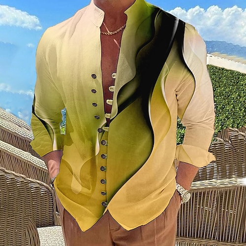 Per uomo Sfumatura Motivo Geometrico Lineare Camicia Camicia con Bottoni Manica Lunga Moda Designer Casual Vacanza Quotidiano Uscire Autunno Primavera Estate Collo alla coreana Stampato Giallo