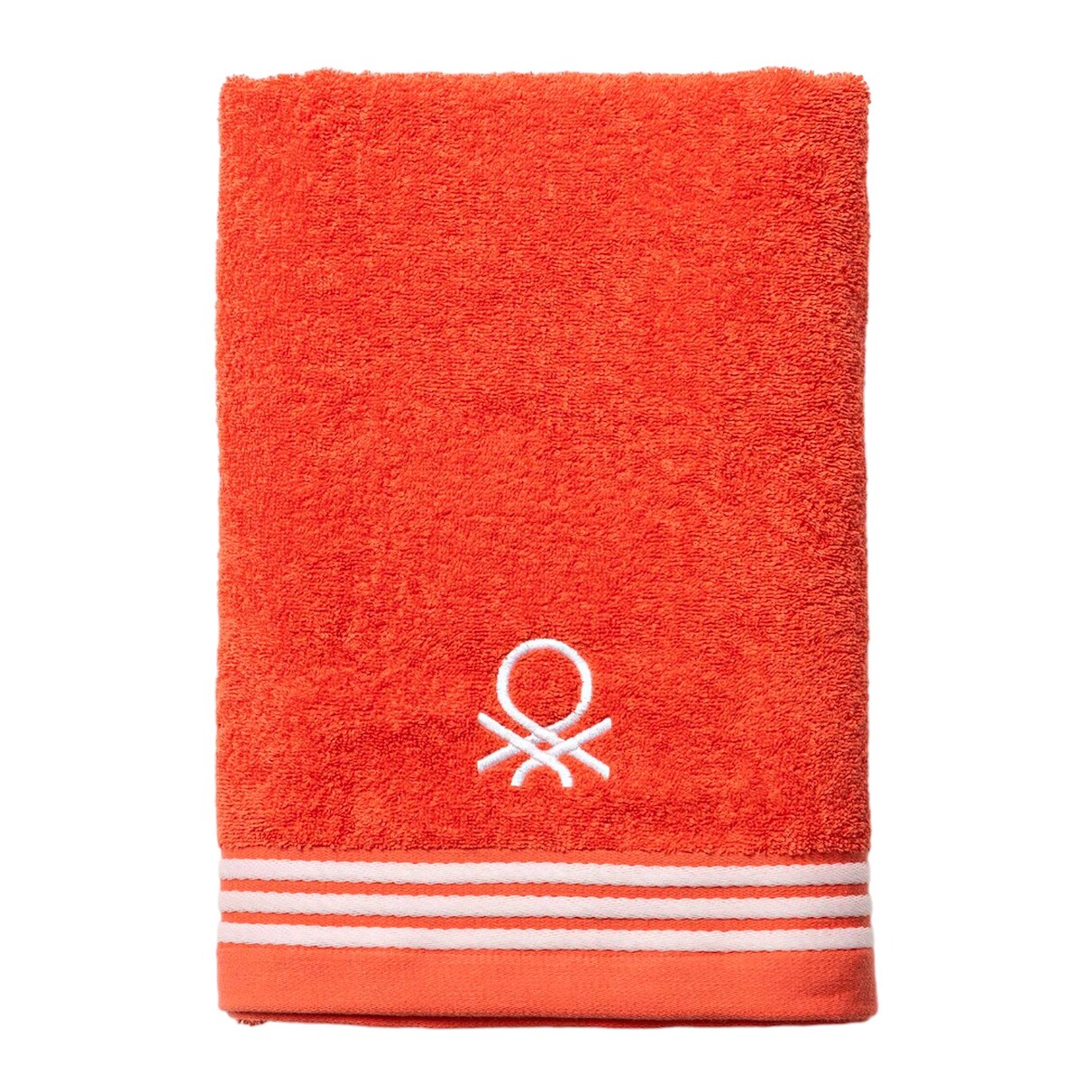 Benetton - Badetuch 70 x 140 cm, 100 % rote Baumwolle mit Regenbogenstreifen