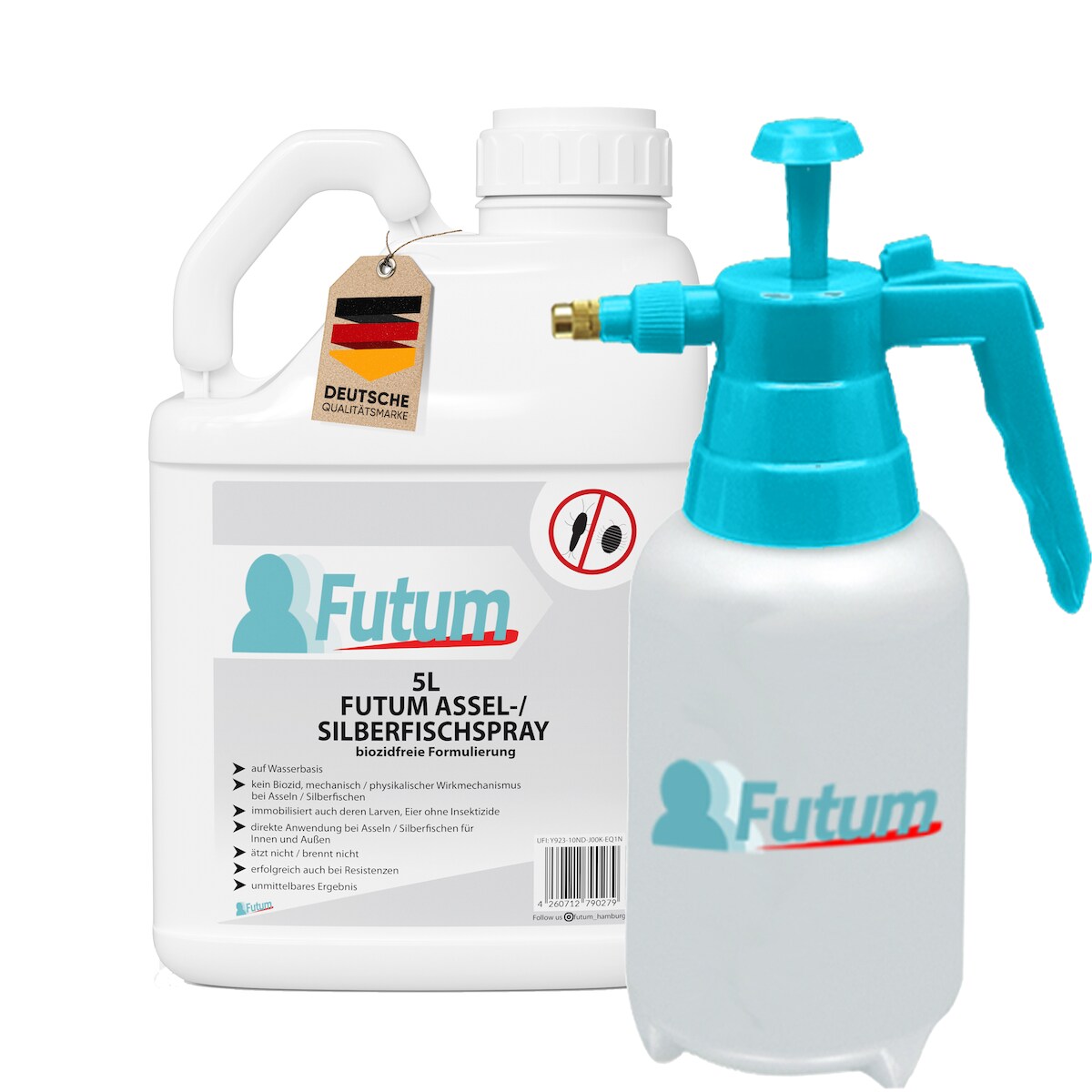 FUTUM 5L Silberfischspray / Asselspray bekämpft Insekten, Eier, Larven ohne Biozide auf Wasserbasis, Sofortwirkung ohne Flecken + TRIGGER