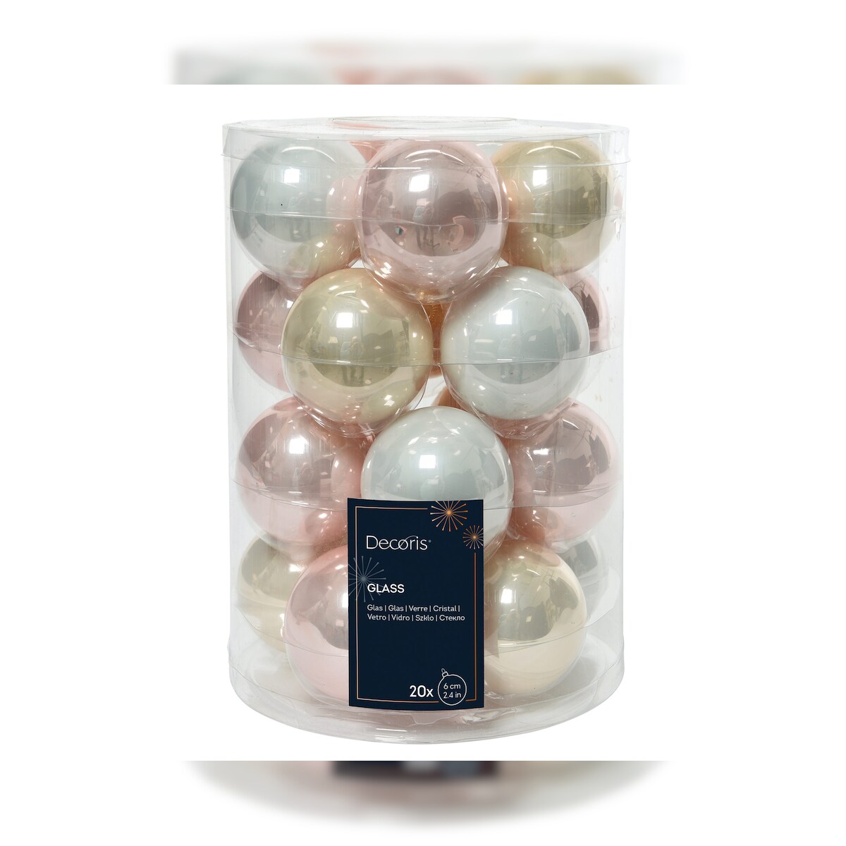 20 Weihnachtskugeln 6cm Glas Christbaumkugeln Set rosa perle Mix