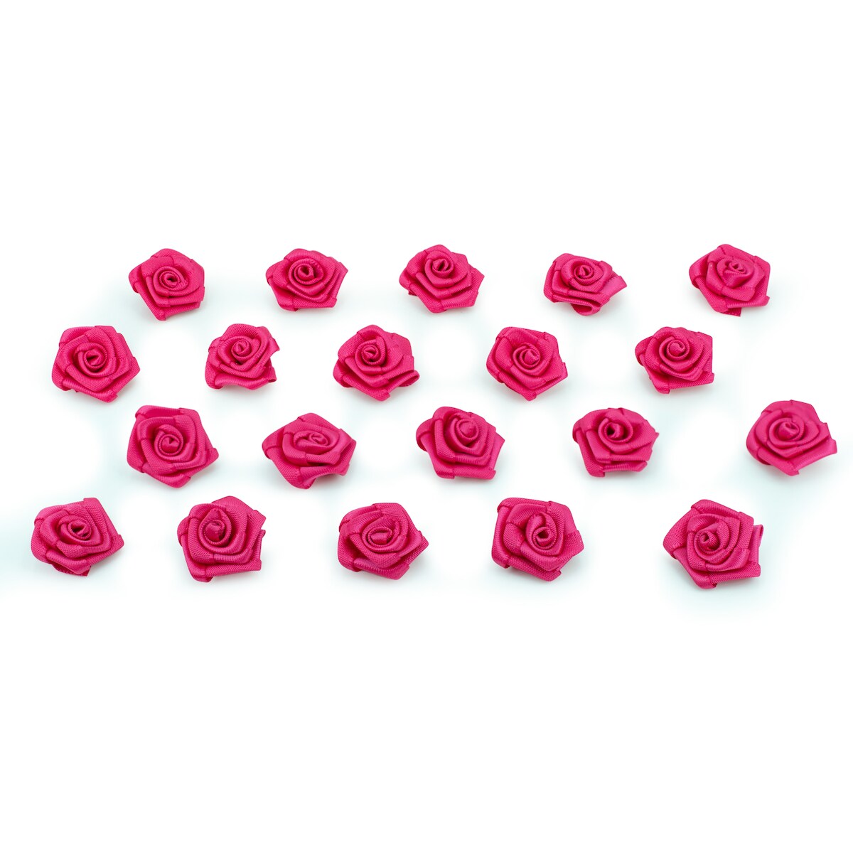 Creativery Satinrosen 2cm 20 Stück Stoffblumen zum Basteln Dekorieren Hochzeit Geschenkverpackung Blütendeko Tischdeko Handarbeit Stoffrosen Deko Fuchsia