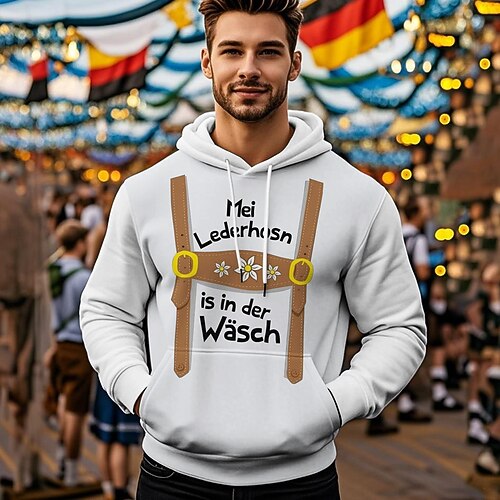 Stampa Manica a Vescovo Felpa con cappuccio Birra Oktoberfest Tasca Frontale Grafico per Per uomo Adulti Stampa a caldo per Carnevale Birra Oktoberfest Vacanza Feste