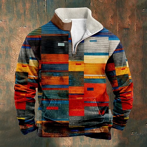 Per uomo Geometrico Stampa Felpa per le feste Felpa Felpe Manica Lunga Felpa Zip a un quarto Vintage Retrò Stampa Ferie Uscire Festival Stampato Autunno Inverno
