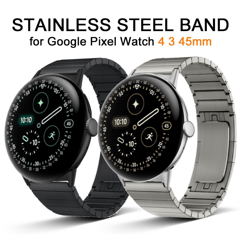 Edelstahlarmband für Google Pixel Watch 4 45mm Herren Metallarmband für Google Watch Pixel 3 45mm Luxuriöses Armband Zubehör schwarz