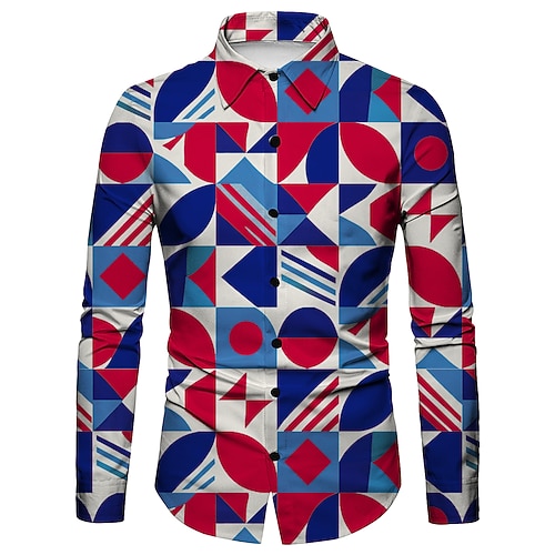 Americano 250 Retrò Vintage Anni '70 Camicia Camicia Aloha Lunghe Hippie Geometrico Etnico Costume Per uomo Mascherata 4 Luglio Feste Giorno dell'Indipendenza Semiquincentenario Adulti Camicia