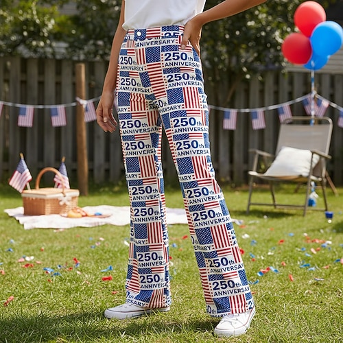 Americano 250 Retrò Vintage Anni '70 Pantaloni Pantaloni a gamba larga Hippie Disco Vita alta Costume Per donna Mascherata 4 Luglio Giorno dell'Indipendenza Semiquincentenario Adulti Pantaloni