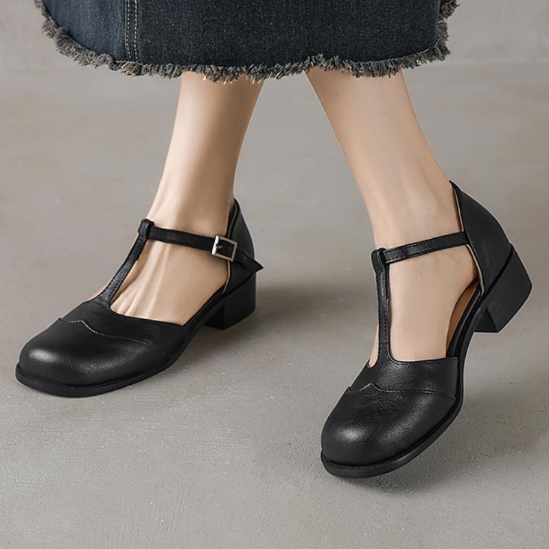 Casual Low Heels Women's Sandals Loafer Shoes Large Size 43 T-strap D'Orsay Black Brown Footwear Shoes Lady Comfortable cm brown