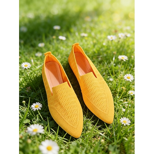 scarpe da donna in Flyknit blu testurizzato con punta a punta e design a V, eleganti slip-on casual per lavoro, shopping, viaggi, abbigliamento quotidiano e uscite primaverili