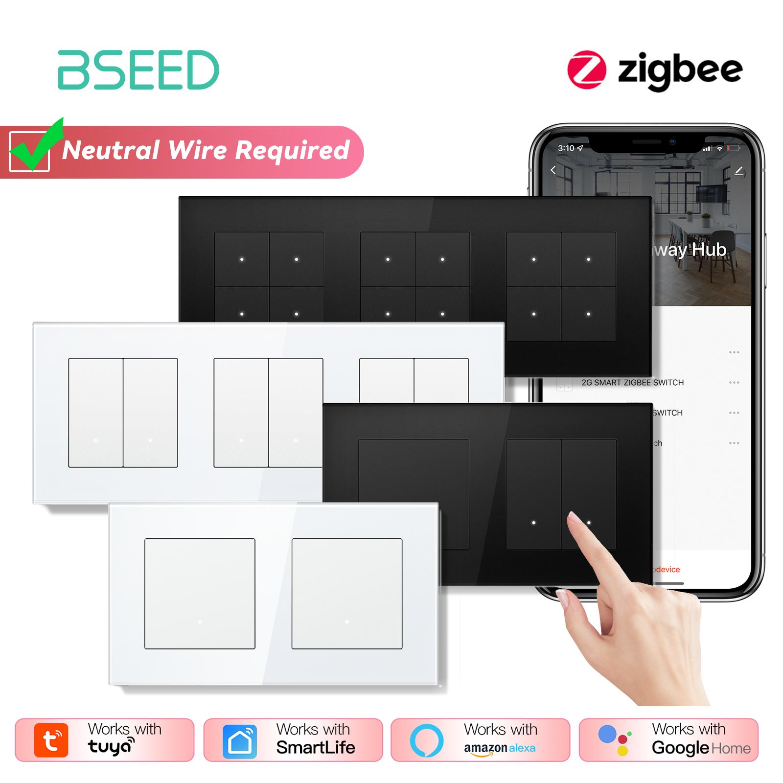 BSEED Zigbee 1/2/3/4-vägs Smarta Väggbrytare Dubbla Mekaniska Knappar Brytare Trippel Ljusbrytare Appstyrning Glaspanel