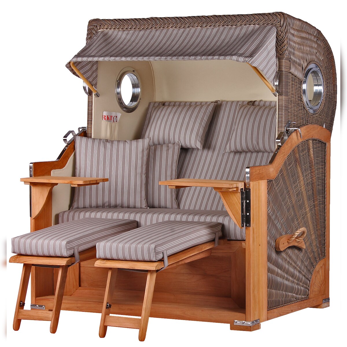 Mr. Deko Strandkorb - bene living - Königssee Teak Bullauge - PE grau - Modell 501 - inkl. Liftersystem